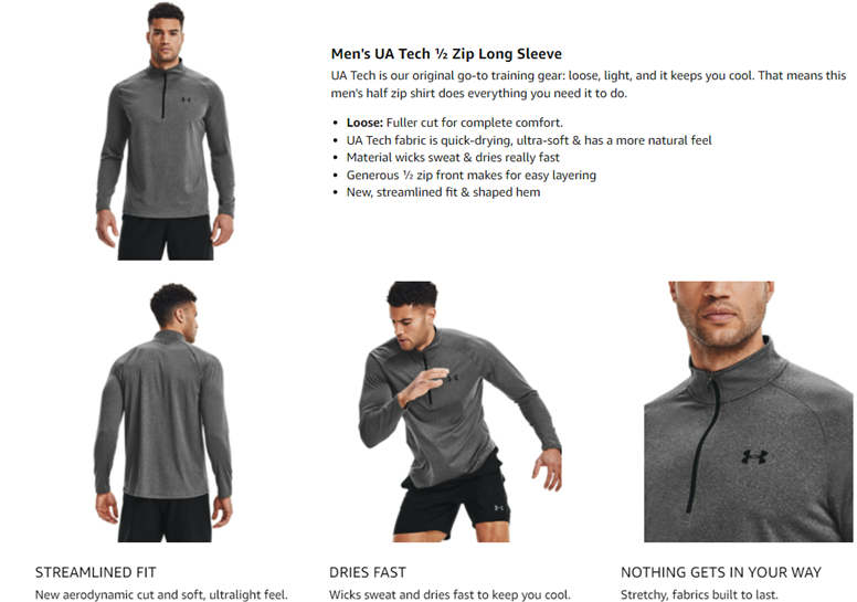• UA Tech fabric is quick-drying, ultra-soft & has a more natural feel