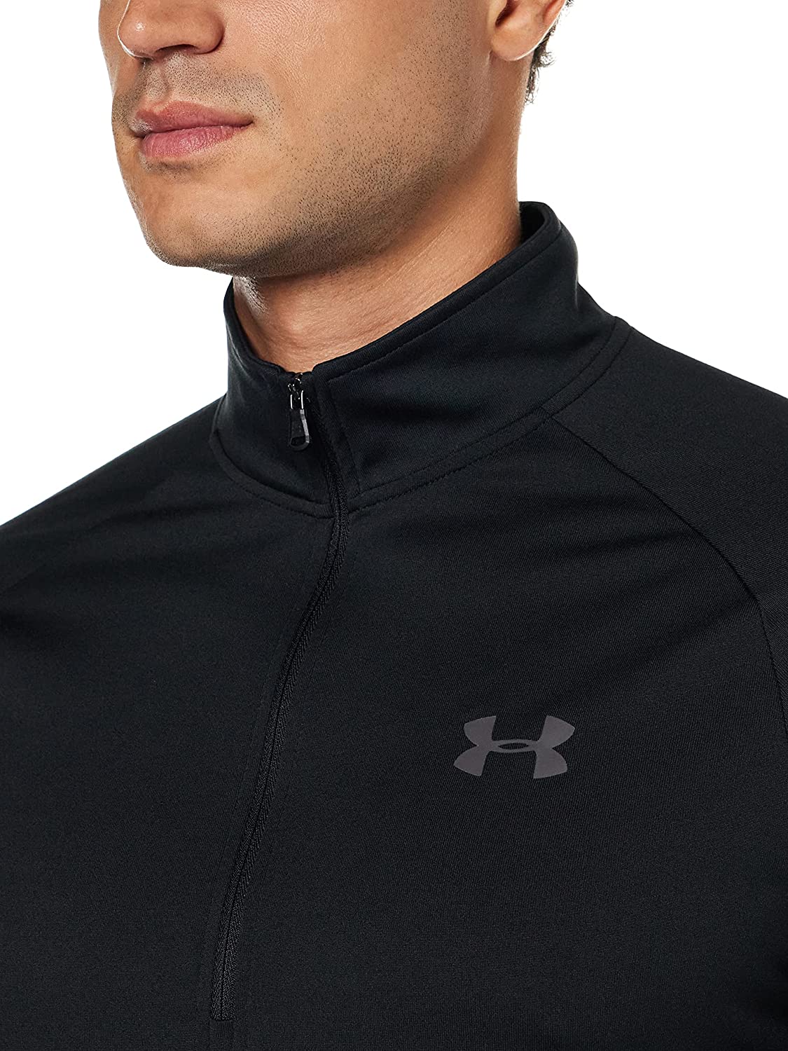 UA Tech™ is our original go-to training gear: loose, light, and it keeps you cool. That means this men's half zip shirt does everything you need it to do. UA Tech™ fabric is quick-drying, ultra-soft & has a more natural feel. Material wicks sweat & dries really fast. Generous ½ zip front makes for easy layering. New, streamlined fit & shaped hem. Loose: Fuller cut for complete comfort. 100% Polyester.