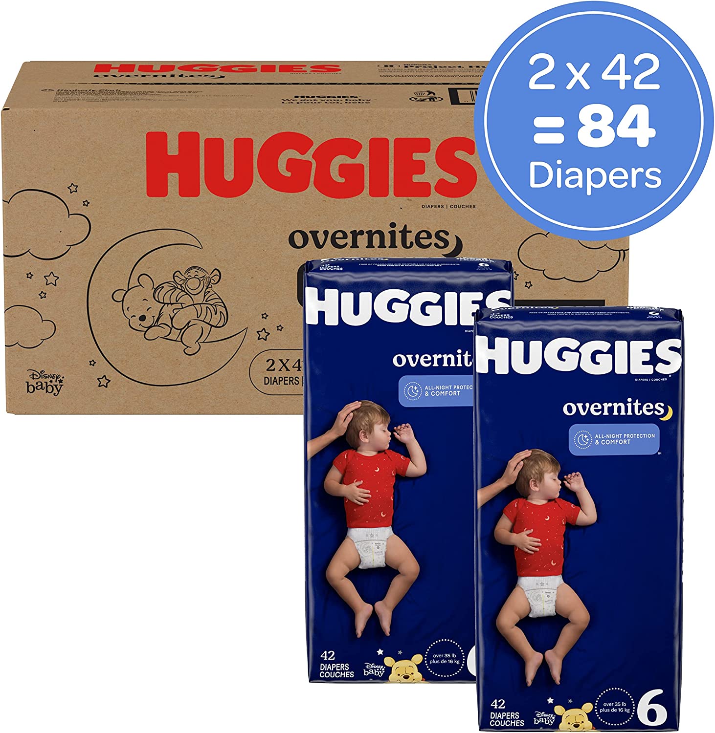 Overnight Diapers Size 6 (35+ lbs), Huggies Overnites Nighttime Baby Diapers, 42 Diapers (Pack of 2), Total 84 Ct