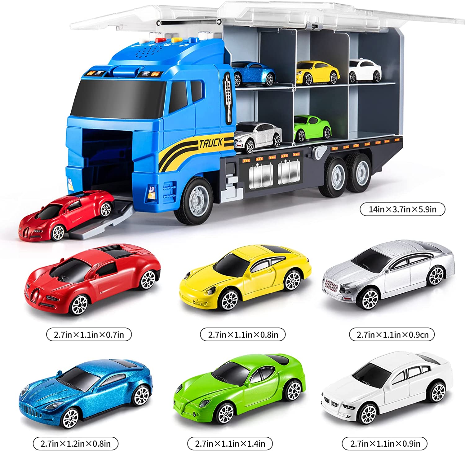 TEMI Toddler Toys for 3 4 5 6 Years Old Boys, Transport Cars Carrier Set Truck Toys w/Play Mat, Die-cast Vehicles Truck Toys Cars, Alloy Metal Race Model Car Toys Set for Age 3-9 Kids Boys & Girls
