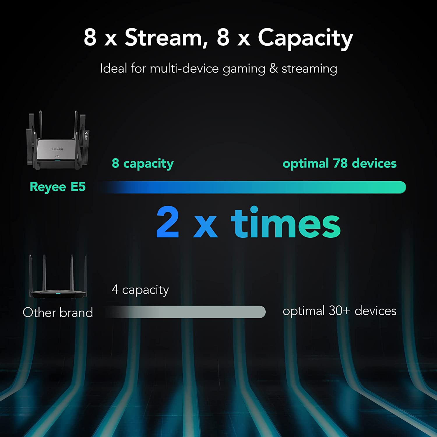 - High Performance and Stability: If your network isn't up to par, consider purchasing the Reyee AX3200 . Our wireless router provides a stable network with high performance for 78 devices using the groundbreaking OFDMA feature and MU-MIMO technology,allowing for simultaneous video streaming and greater family connectivity.
