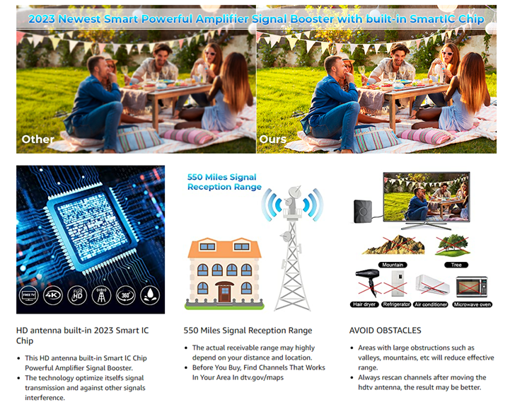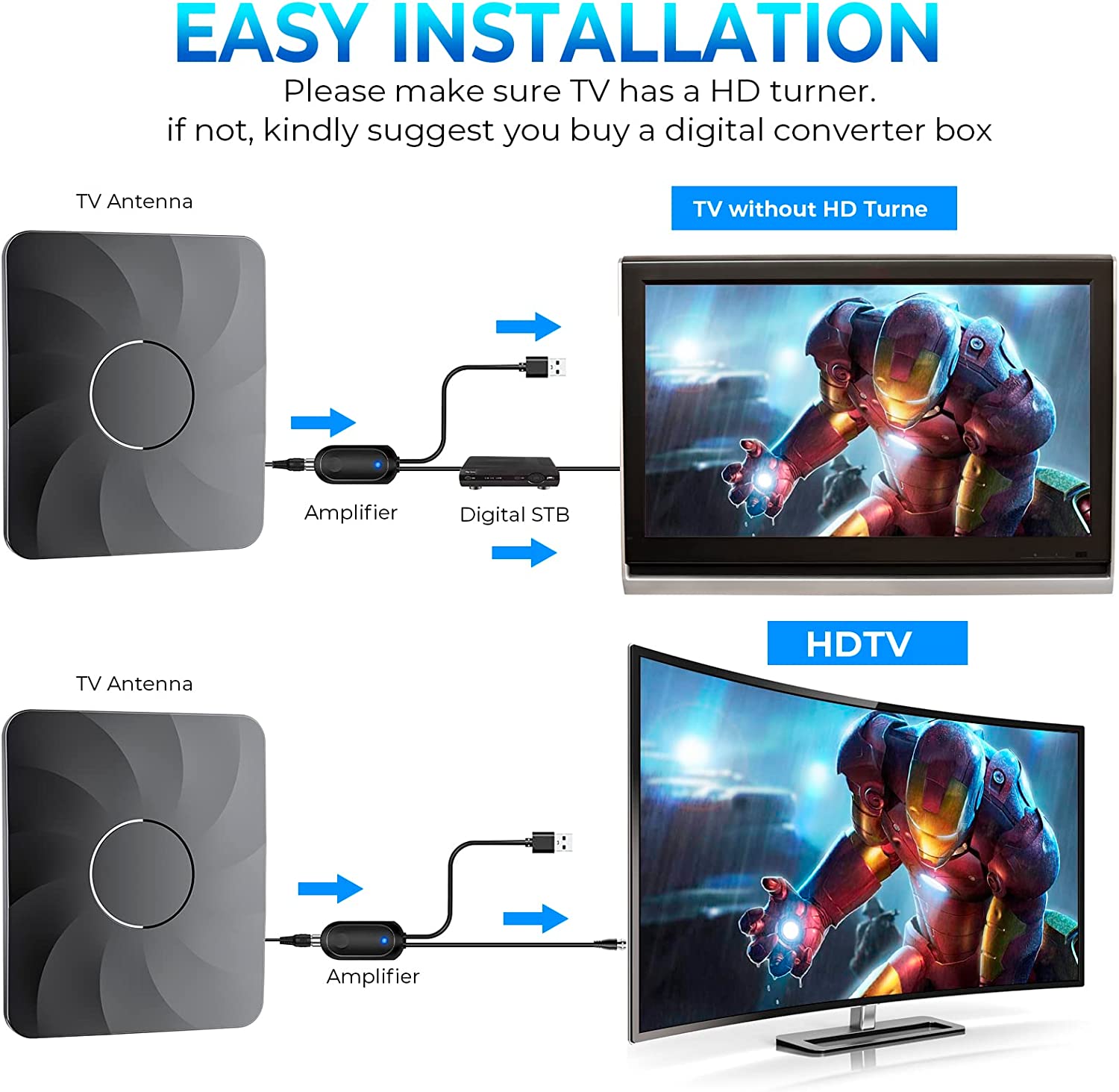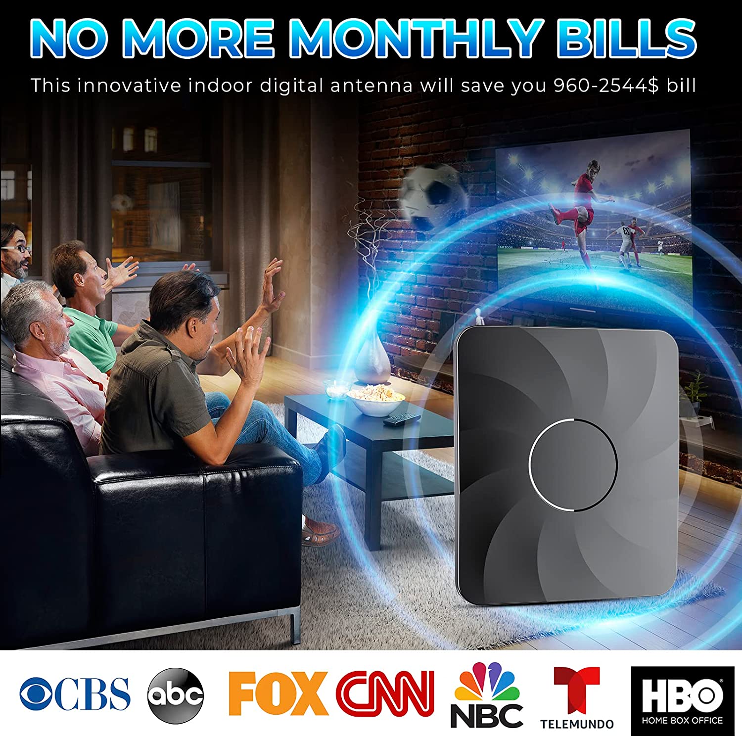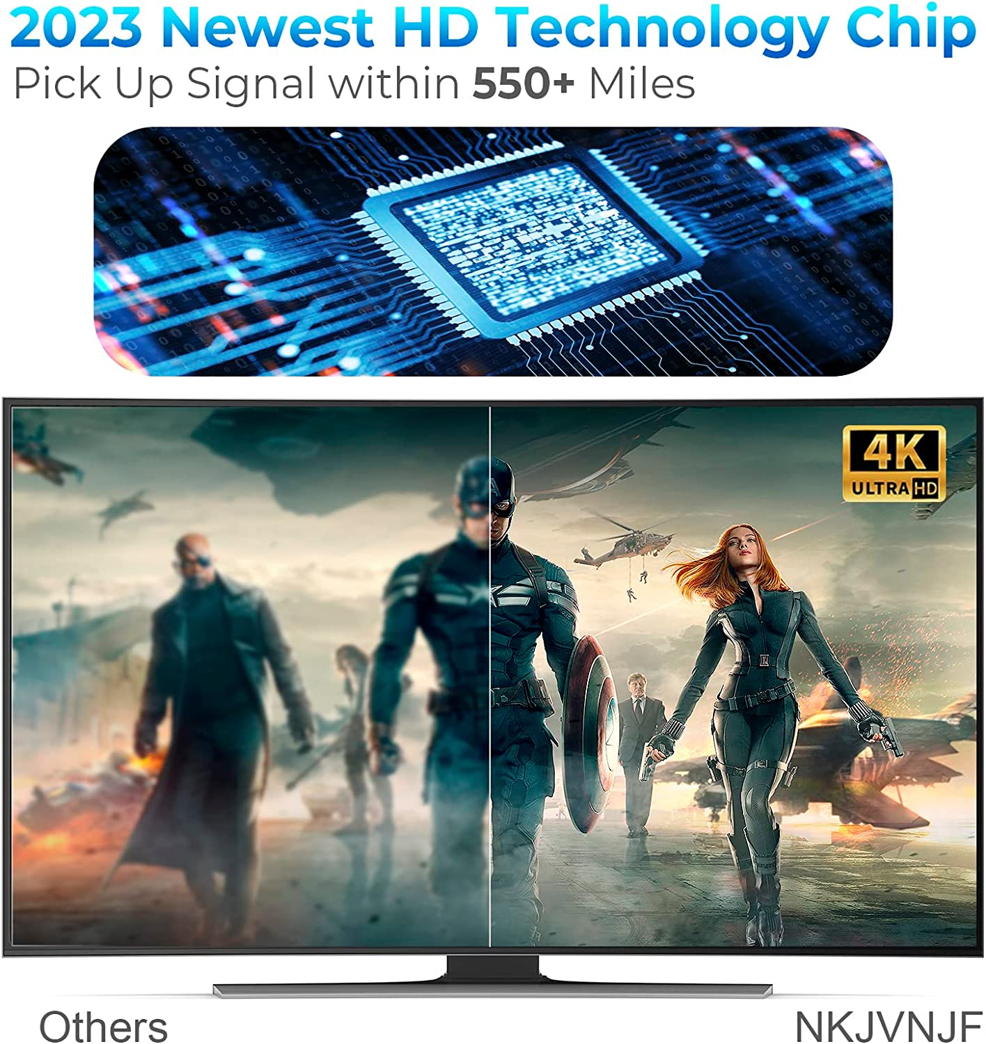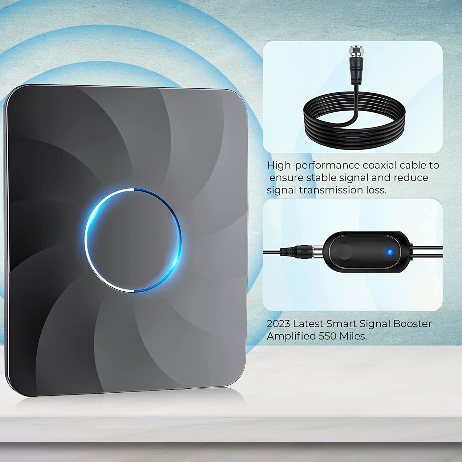 2023 Upgraded Tv Antenna for Smart Tv Up to 550 Miles, Indoor Outdoor Digital Antenna for All TVs, Support 8K 4K 1080P HD Highest Rated TV Antenna with Amplifier Signal Booster & Thick Coaxial Cable