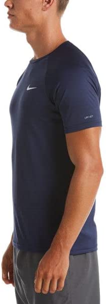 The Nike Essential Swim Shirt offers sun protection to help guard against UV rays while you're training outdoors. Knit fabric gives this shirt natural stretch for a comfortable fit, while sweat-wicking technology helps to manage moisture.