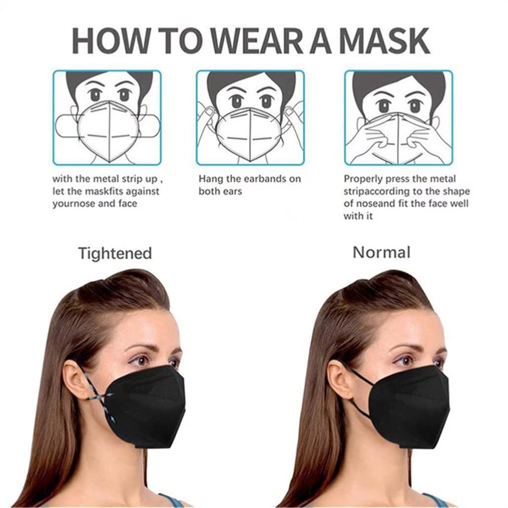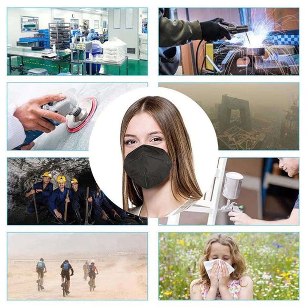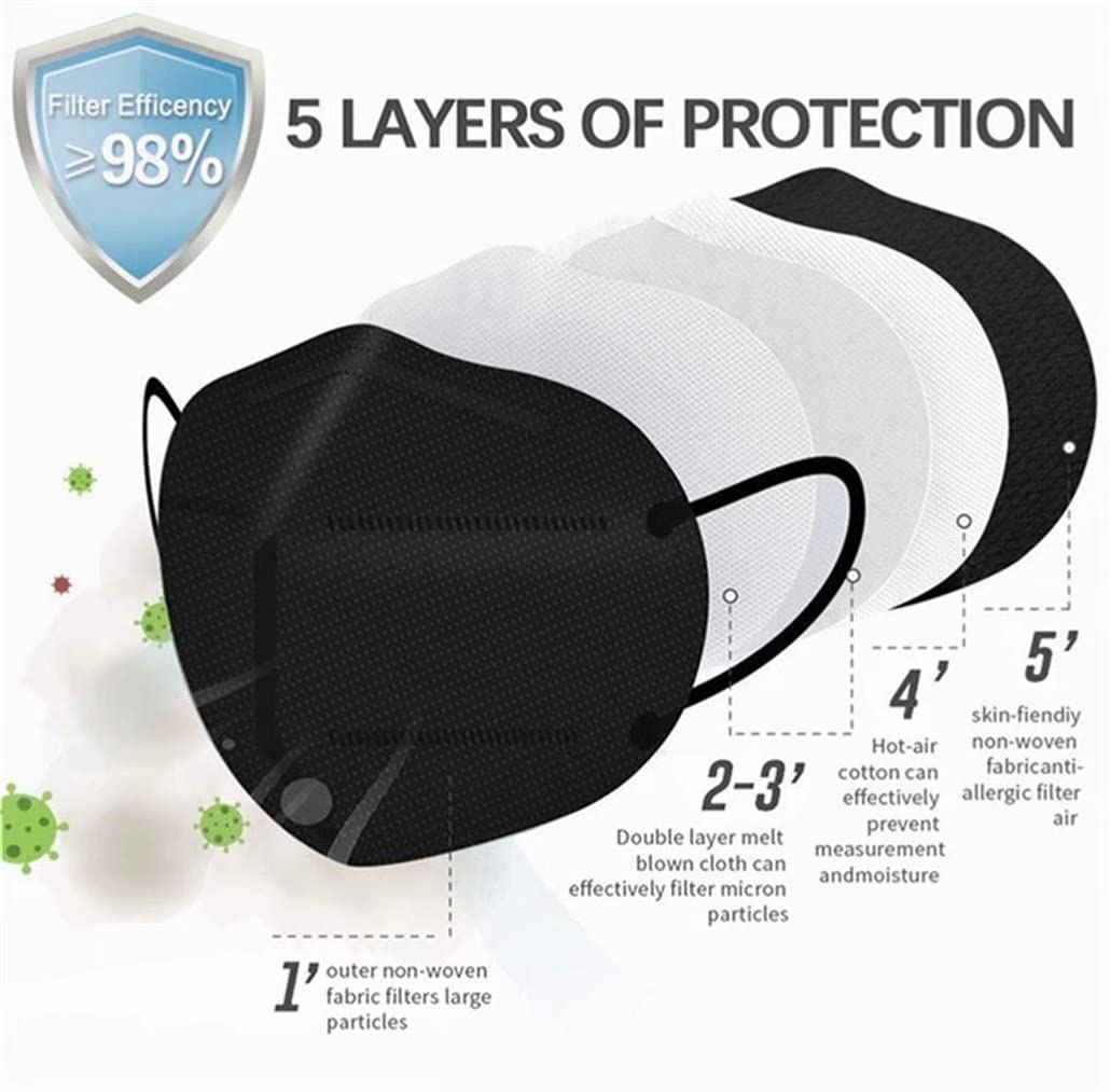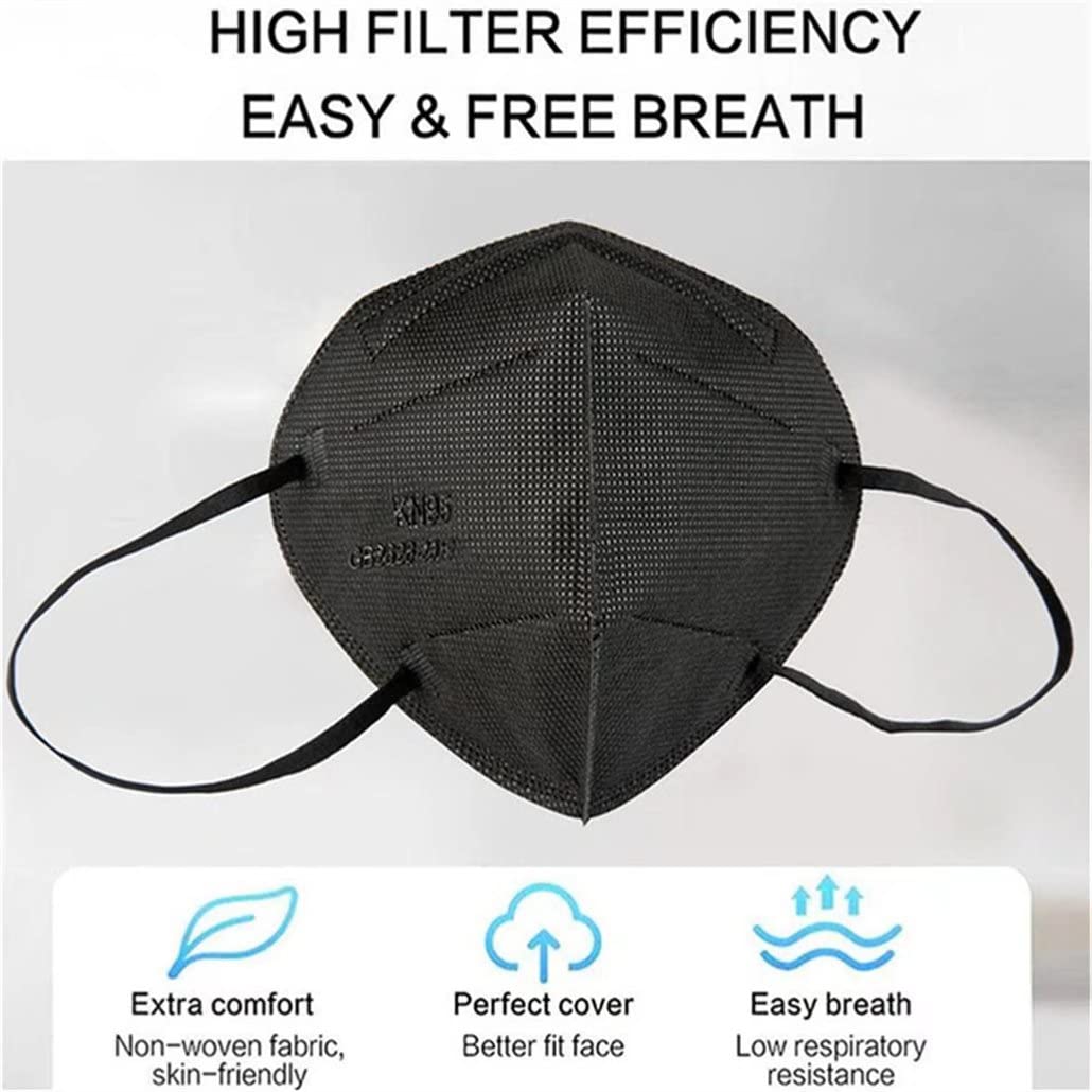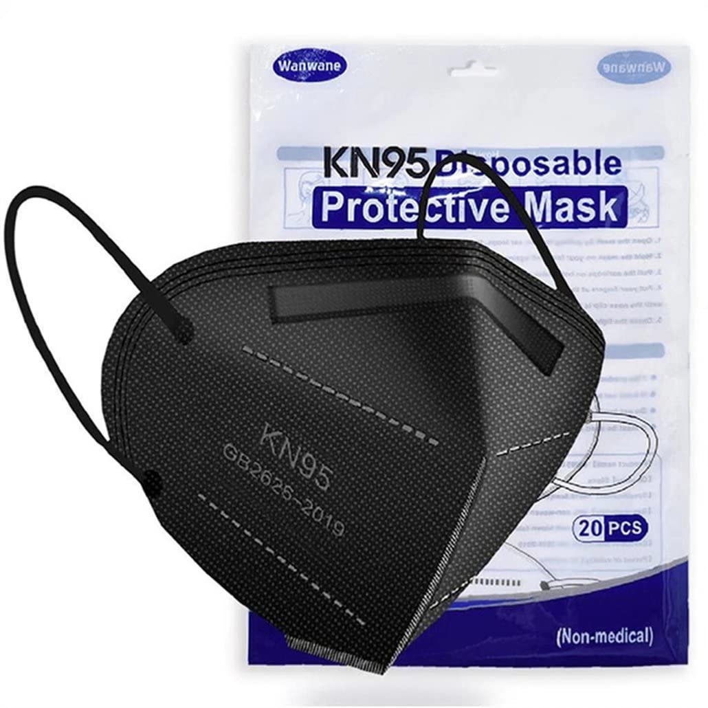 Wanwane Black KN95 Mask 20PCS Cup Dust Safety Face Masks Breathable 5 Layer with Elastic Ear Loop and Nose Bridge Clip for Adult Men & Women