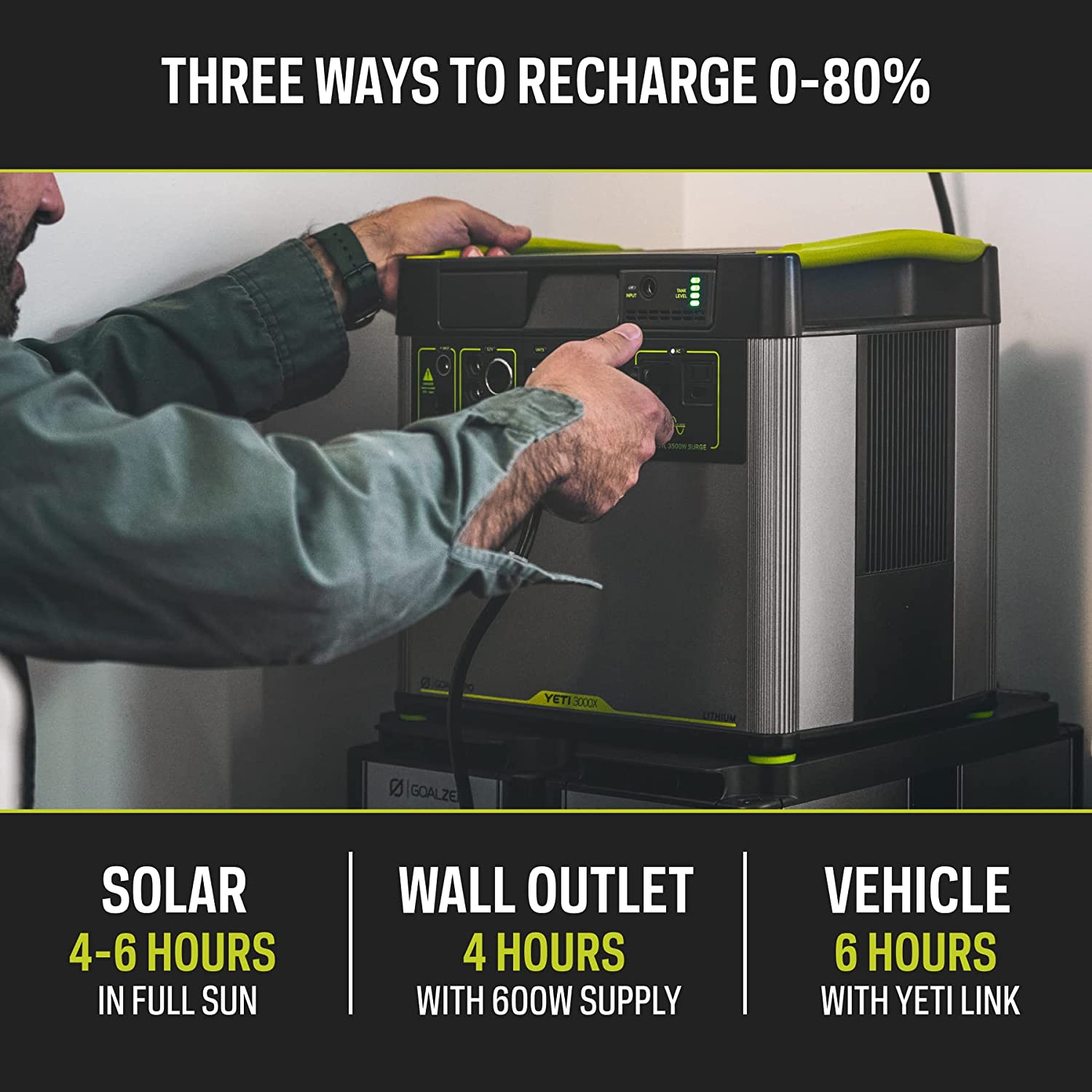 - DURABLE AND SAFE: Professional grade construction with a heavy duty anodized aluminum enclosure and internal separately sealed battery unit provides years of use at home or off-grid. Goal Zero uses only the highest quality Tier 1 Lithium battery cells, which are protected by an advanced multi-sensor battery management system. Our best-in-class US-based customer service is there whenever you need us, and our 2-year warranty backs the Yeti 3000X for additional peace of mind.