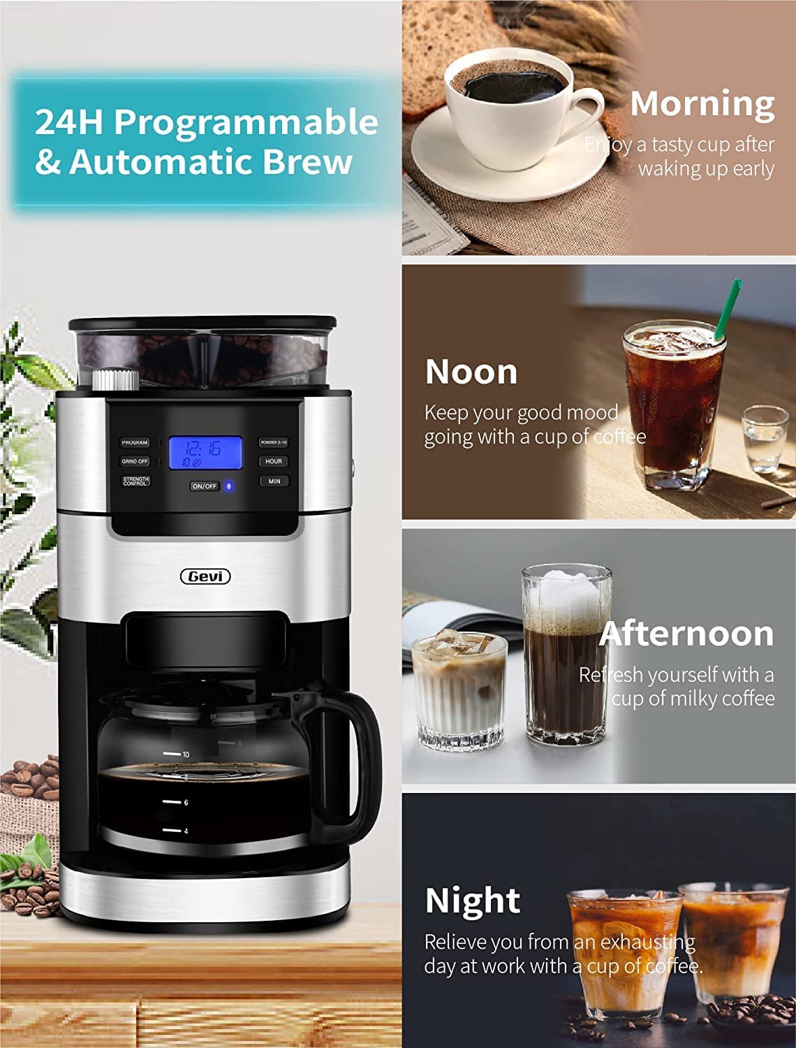 Included Components☕1 * Gevi Grind and Brew Automatic 10-Cup Drip Coffee Maker ☕1 * Glass Coffee Pot ☕1 * Scoop ☕1 * Permanent Filter ☕1 * Manual