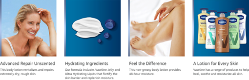 Made with Vaseline Jelly and Ultra-Hydrating Lipids, Vaseline Intensive Care Advanced Repair Unscented Body Lotion for dry skin prevents dryness and helps keep your skin looking healthy and hydrated. With daily exposure to environmental triggers (like wind, lack of humidity, and sun), skin's natural moisture barrier can break down, allowing water to escape the skin. But the Ultra-Hydrating Lipids in our Advanced Repair Lotion fortify the skin barrier and replenish moisture to allow the skin's natural barrier to recover. Vaseline Intensive Care Advanced Repair Unscented Lotion, formulated with Ultra-Hydrating Lipids and Vaseline Jelly, locks in moisture and repairs extremely dry skin. This unscented body moisturizer is clinically tested to provide 90% more moisture (vs. untreated skin). This lotion for dry skin absorbs fast for rich moisturization without feeling greasy and provides 48-hour moisture. Use this dermatologist-tested body lotion daily on dry, rough skin for stronger, noticeably healthier skin. Just apply to your skin for long-lasting moisture. This lotion bottle is made of 50% recycled plastic. Our ambition is to get to 100% recycled plastic in the near future. Since 2018, we've used 337 Metric Tons of recycled plastic across the Vaseline product portfolio in North America.