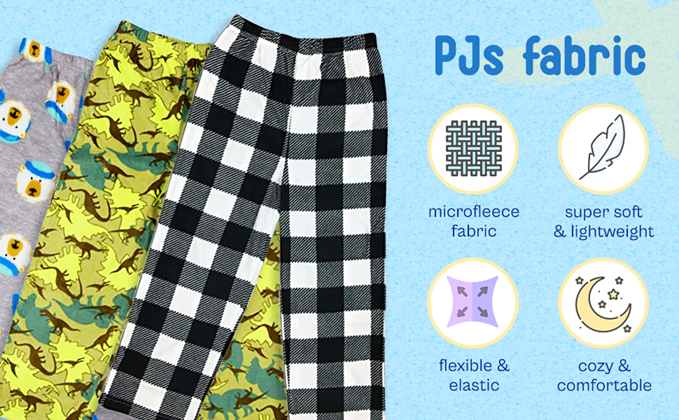 • Boys' Fashion Pajamas: Our 3-pack of printed or plaid pajama for boys adds a dash of fun flare to your child's bedtime. Your son won't want to wear anything else after wearing these soft pajamas for boys!