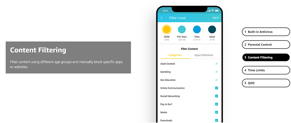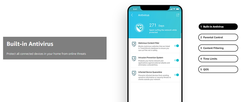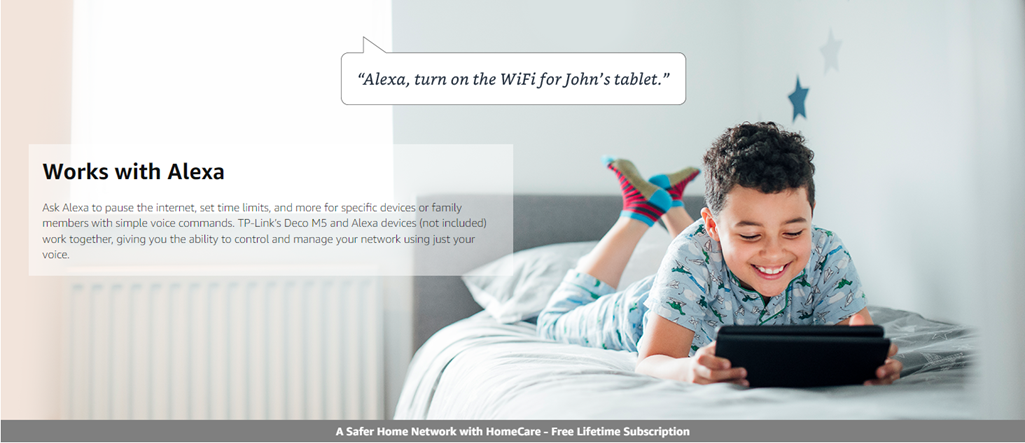 Maximum wireless transmission rates are the physical rates derived from IEEE Standard 802.11 specifications. Range and coverage specifications along with the number of connected devices were defined according to test results under normal usage conditions. Actual wireless transmission rate, wireless coverage, and number of connected devices are not, and will vary as a result of 1) environmental factors, including building materials, physical objects and obstacles, 2) network conditions, including local interference, volume and density of traffic, product location, network complexity, and network overhead and 3) client limitations, including rated performance, location, connection quality, and client condition. MU-MIMO capability requires both the mesh system and client devices to support MU-MIMO. Free lifetime subscription to TP-Link HomeCare is included with purchase on select TP-Link models at no additional cost. “Lifetime Subscription” refers solely to the life of the purchased device and cannot be transferred. TP-Link reserves the right to modify the service and feature at anytime.