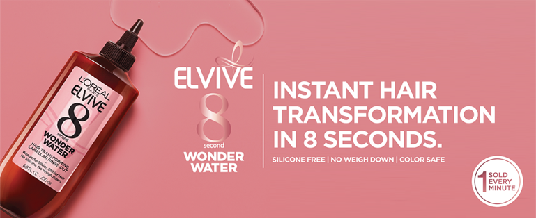 • Breakthrough hair treatment that visibly transforms hair from the first use, 1 Elvive 8 Second Wonder Water sold every minute
