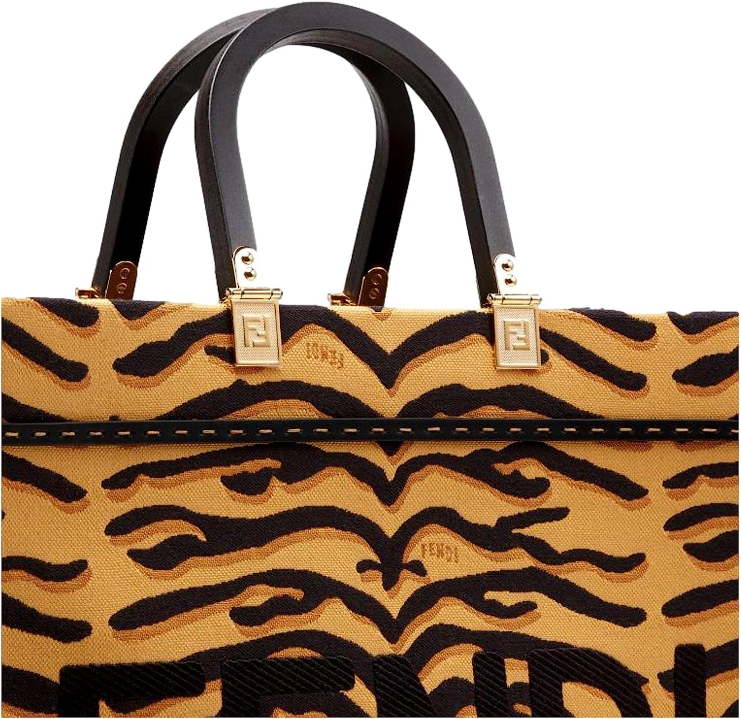 This Fendi Sunshine Shopper Bag combines classic lines with a bold tiger print in the canvas shopper tote. The designer was inspired by the Chinese Year of the Tiger celebrations and the bold black and yellow colors make the print pop.