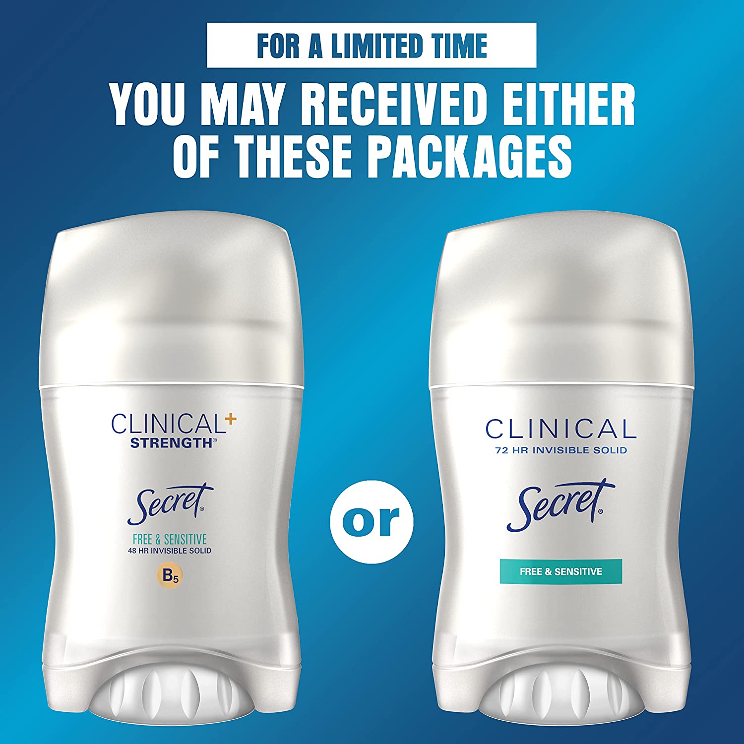 Secret Antiperspirant Clinical Strength Deodorant for Women, Invisible Solid, Sensitive Unscented, 1.6 Ounce (Pack of 3) (Packaging may Vary)