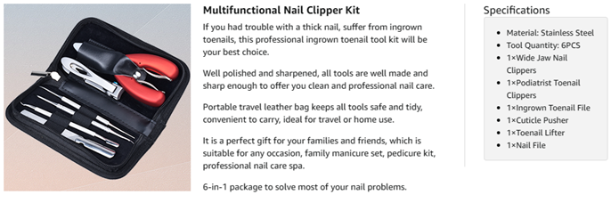 • 【Nail Clippers For Thick Toenails: 6-in-1 】Softale toenail trimmer set consists of 6 tools, 1× Wide Jaw Opening Nail Clipper, 1× Podiatrist Toenail Clippers, 1× Nail Polish File, 1× Nail Cuticle Cutters, 1× Ingrown Toenail File, 1× Toenail Lifter. Meet your different nail trimmer needs, keeping your feet healthy without pain and nail fungus.