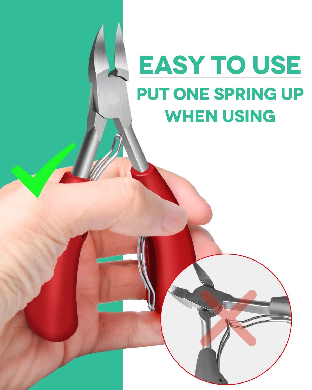 • 【Fingernail and Toenail Clipper】0.8 Inch 180 Degree Big Jaw Opening Toenail Nipper for thick or ingrown nails up to 18mm. Made from premium stainless steel for sharpness and precision cutting. The handle is reinforced for extra strength when pressing down on thick nails. Specialized design for good grip and non-slip action.