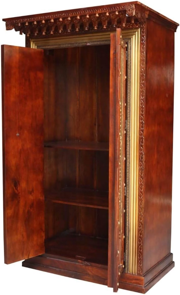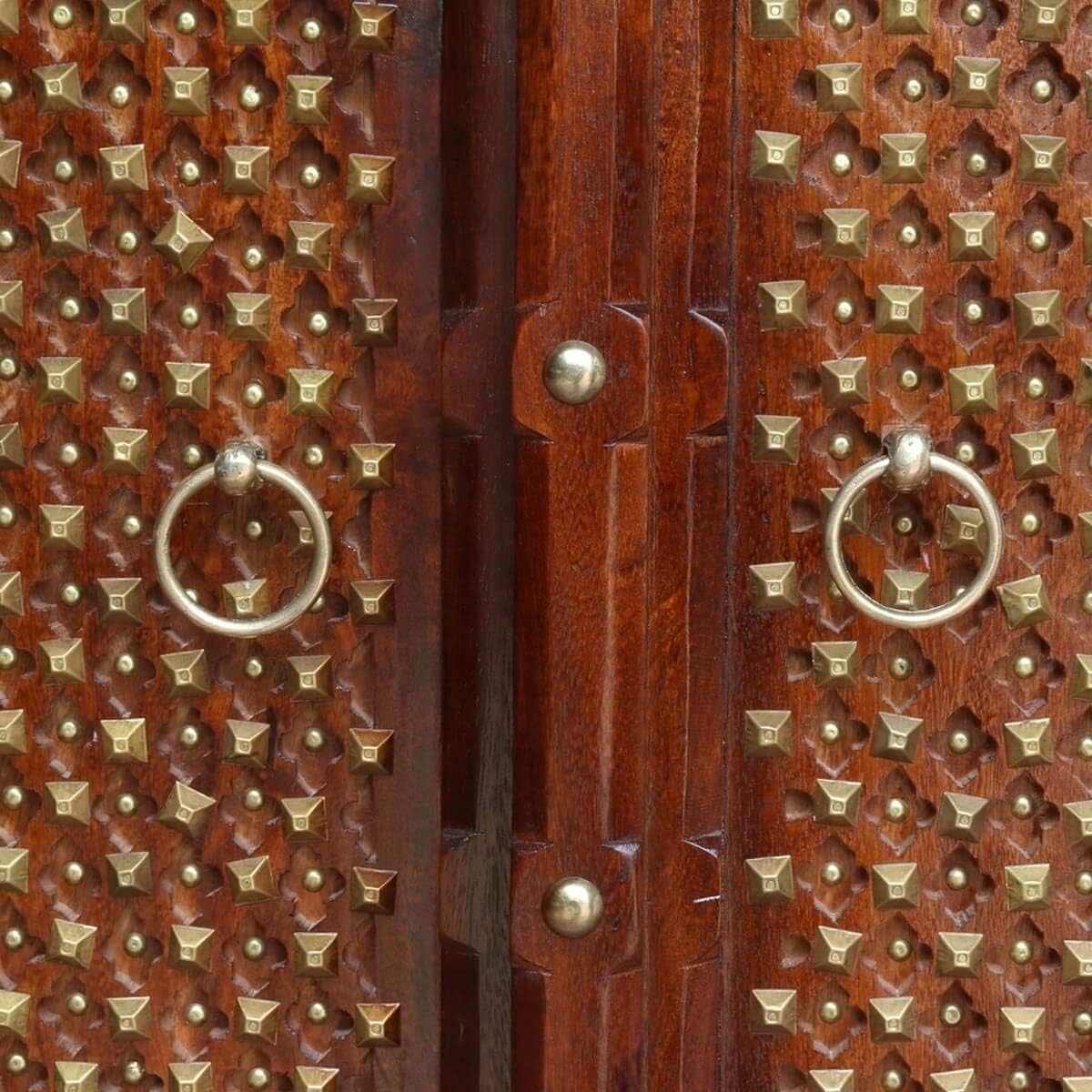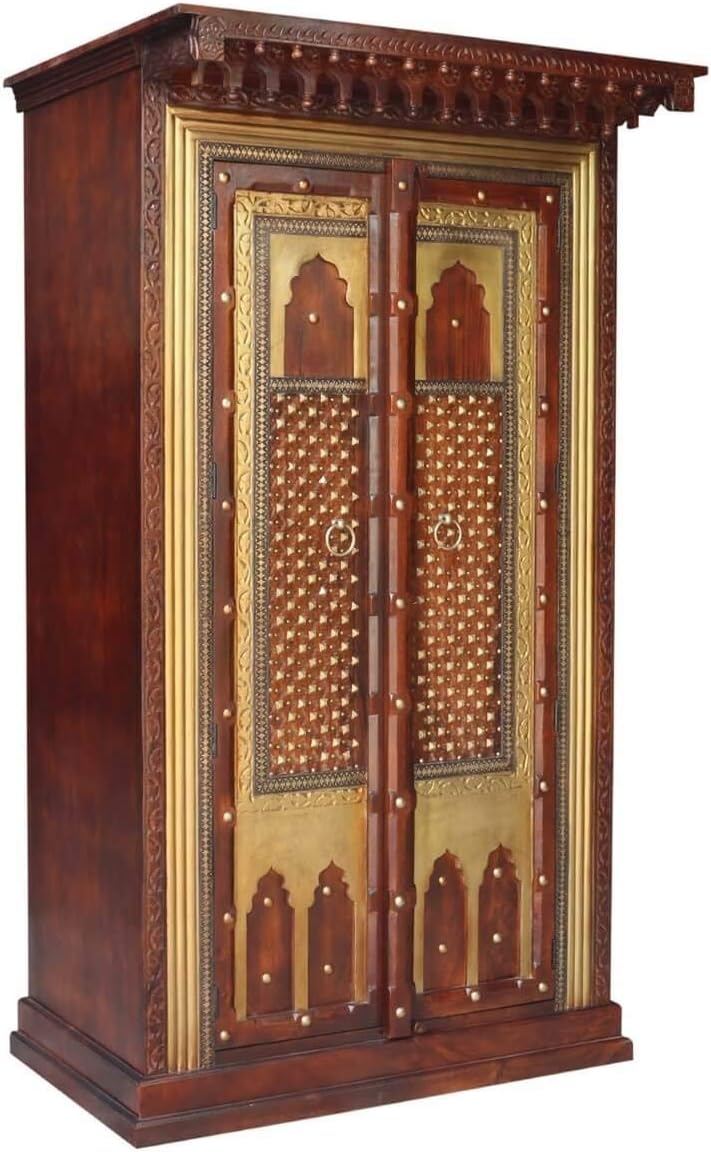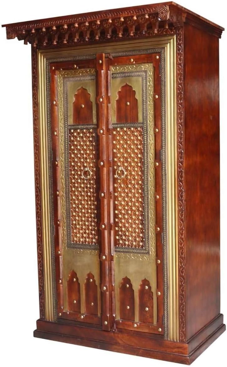 Antique Indian Brass Work Indian Solid Wood Heritage Brass Door Large Cabinet, Cabinet Storage Units Indian Solid Wood,Living Room Bedroom Furniture,Modern Cabinet