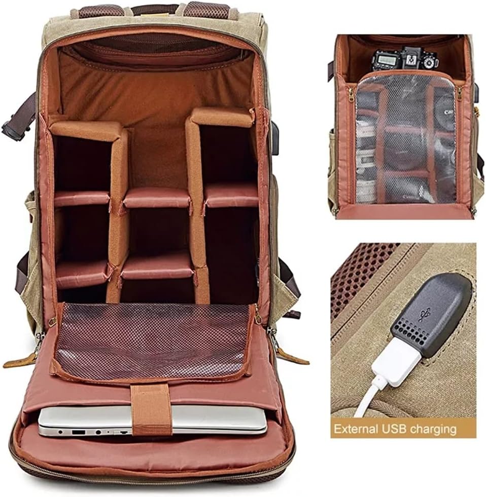 SXDS Photography Retro Waterproof Batik Canvas Backpack W USB Port Fit 15.6inch Laptop Men Camera Bag Carry Case (Color : Gray, Size : 28 * 16 * 43cm)