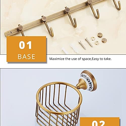 ZSEDP Antique Bathroom Blue and White Porcelain Accessories Carved Copper-Alloy Hardware Set Wall Mounted Bathroom Hardware Kit