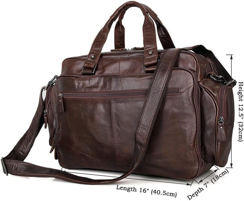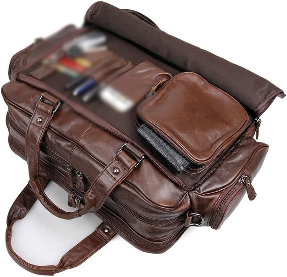 DLOETT Functional Travel Bag Men Leather Tote Bag Business Casual Laptop Shoulder Bag Tote Briefcase